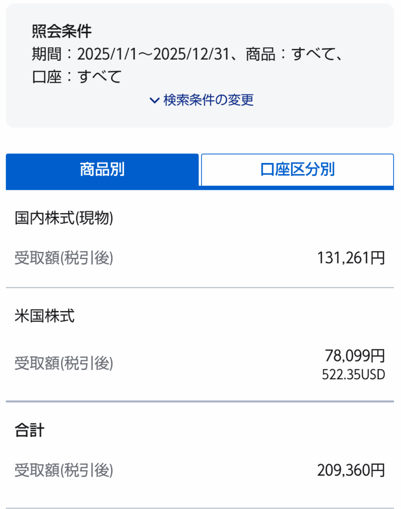 株の配当とJ-REITの分配金の合計は、209,360円でした。